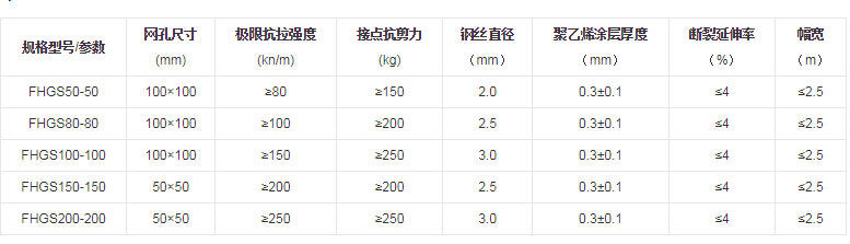 一、钢丝土工格栅接点强度(抗拉、抗剪、抗撕裂、抗扭)要高,及格栅纵横向筋肋的接点传力性能要好,能把横向筋条受到的作用力通过接点传到纵向肋条,反之亦然。因此,要求接点必须整体性好,接点强度要比较接近筋条的强度(抗拉时不在接点处断裂),或者两者强度相差要小,才能相匹配,这是合理,经济的。否则,接点强度比筋条强度低很多,则不能安全发挥出高强度肋条的抗拉能力,形成结构性的后果是造成“大马拉小车”式的浪费。