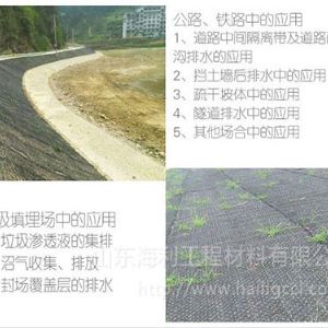 复合波形排水网垫又成 W型麦克排水垫俗称W型复合排水网,由上下两层无纺布结合中间排水芯板所组成。排水芯板是以聚丙烯为原材料经过特殊挤压形成“W"型纵向全断面连续排水通道。由于排水芯板内通道连续且呈直线状,不同的通道内水平相互不干扰,使得渗水水流能够以快的速度通过,从而取得良好的排水效果。上下复合两层无纺布起到过滤作用,使得工程实际应用中不会有颗粒进入排水通道内堵塞通道,以确保土体构架完善,不产生结构变形或坍塌。而在有特殊防渗要求的工程下,可以选择复合一层土工膜以起到防渗作用。因此该产品其实结合了排水、反滤、防渗三种功能与一身,是典型的多功能材料。新型土工复合排水垫在涉水工程中能够快速地导排多余的水分,降低孔隙水压力,提高工程的整体稳定性。